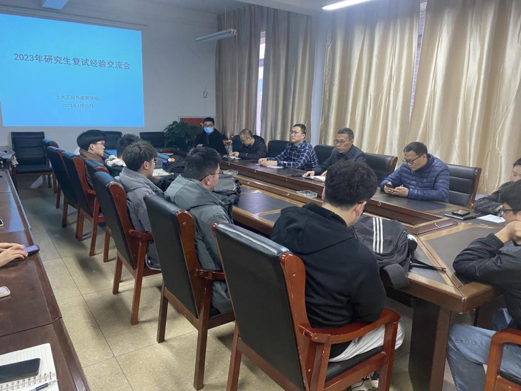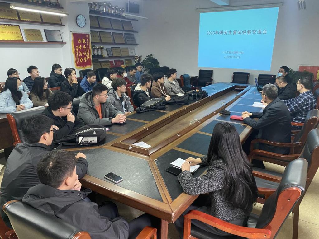 为了稳定2023届考研学生的复试心态,提高考研成功率,我院于3月20日在A09三楼会议室召开了考研学生复试经验交流及调剂动员会,本次会议邀请了4名往年考研录取的优秀毕业生线上参会,赵磊院长、袁大伟书记以及4位辅导员现场参会,会议由土建学院学工办主任王晓冰主持。