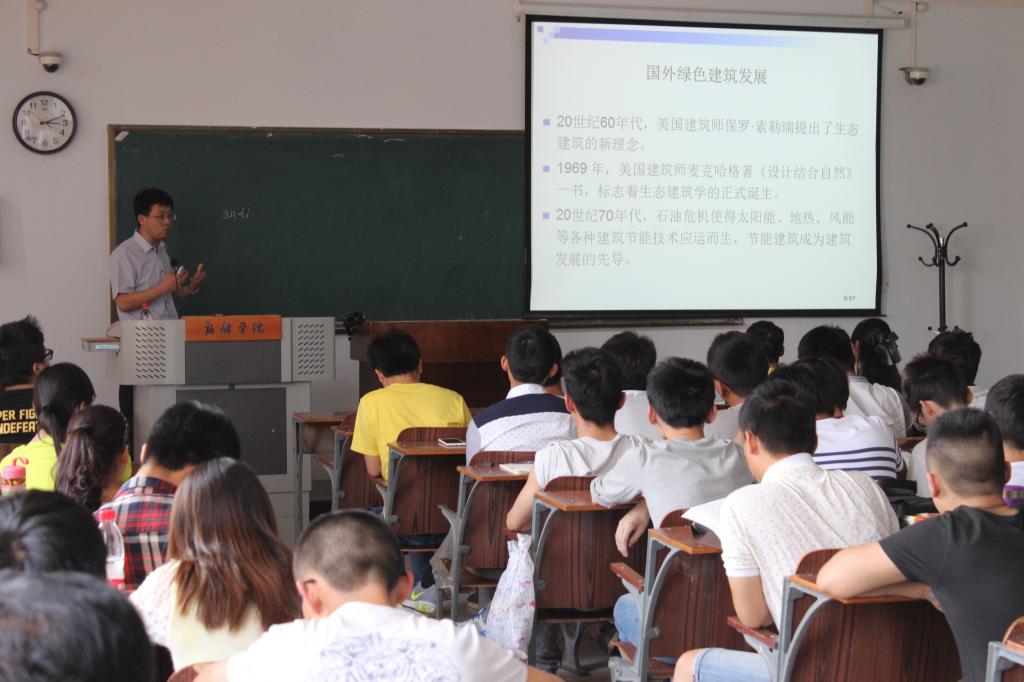 讲座开始前,由赵院长对刘教授的科研经历和科研成果进行了介绍,然后王教授的讲座由环境污染引入,对绿色建筑的概念进行了介绍,然后对建筑节能、节水、节材、节地及运维管理等方面的节能新技术做了详细的讲解,并介绍了绿色建筑的评价标准,最后刘教授又用实际的案例对以上技术进行了分析。通过这次讲座,所有师生都表示自己对绿色建筑的概念和发展前景有了更加深刻的认识。
