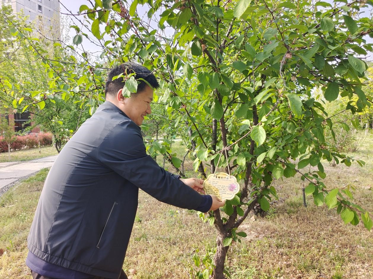 党日活动区域位于校园东侧,树木主要由乔木、小乔木和花灌木组成,主要树种有雪松、油松、悬铃木、女贞、红叶石楠、紫荆等。活动伊始,教师第三党支部党员、树木学课程教师刘兴洋同志介绍了此次党日活动区域树木的种类、习性等相关树木知识。教师第三党支部组织委员魏景沙同志发放树木名牌,并详细演示正确的挂牌系绳方法。参加此次活动的师生党员认真聆听,亲手为树木挂上“身份证”50余个,现场气氛积极热烈。
