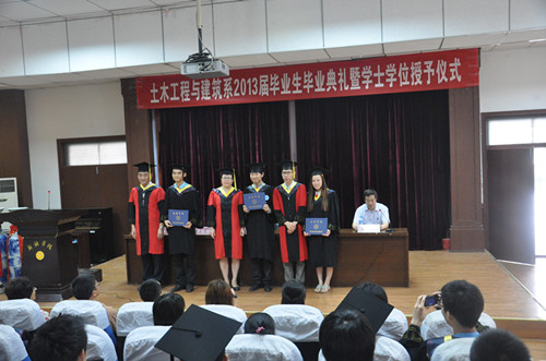 在学士学位授予仪式上,马芸副主任宣读了2013届学士学位授予决定,3位系领导一起为获得学士学位的毕业生颁发了学位证书,并一一和他们握手以示祝贺。整个会场沉浸在欢庆喜悦的气氛之中。