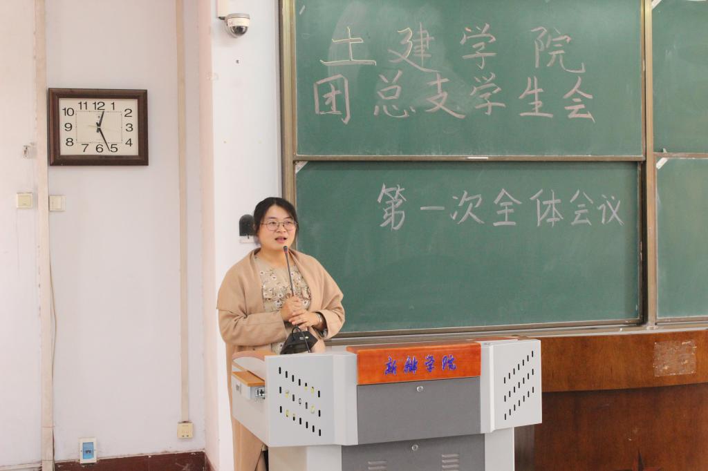 会议伊始,团总支书记毛戎老师做重要讲话。毛戎老师对新成员的加入表示热烈的欢迎,详细介绍了近几年我院团学工作取得的成绩,并为新成员加油、鼓劲,希望全体学生会成员能够以身作则,共同努力把工作做得更好。随后,团总支副书记陈子伟、学生会主席团成员代表高升、刘佳棋、王启鑫、张莹依次上台,对团总支学生会机构组成和职责功能做出详尽介绍并表达出对新成员的期望。最后,学生会主席高升在会议提出几点注意事项,重点指明新成员要严于律己,尊重老师,积极参与院系工作,努力为我院做出贡献。