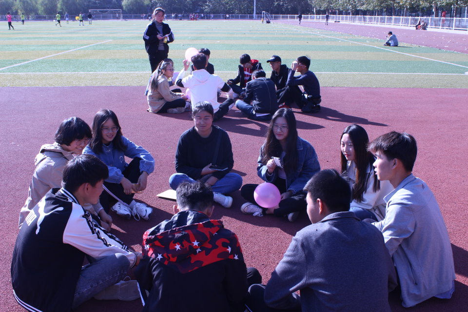 活动开始前,主席团成员组织各部门按照分组到达指定位置,各小组组织成员开展活动。在社会工作协会成员的协助下,各小组分别开始活动。首先进行的游戏是“互换名字”,成员们围圈而坐,并暂时使用右边的成员的名字,一人点名提问,反应不及时者则会遭到念绕口令的惩罚。一轮游戏后,成员们加深了对彼此的了解,活动现场气氛十分融洽。随后,“蜈蚣翻身”、“游戏接龙”、“十人九足”等游戏相继进行,各成员精神抖擞,积极参与,成员间相互协助,分工分明。期间,团总支书记毛戎老师莅临现场,鼓励成员们积极参与活动,加强交流,感受到成员们参与活动的热情,为成员们的表现倍感欣慰。