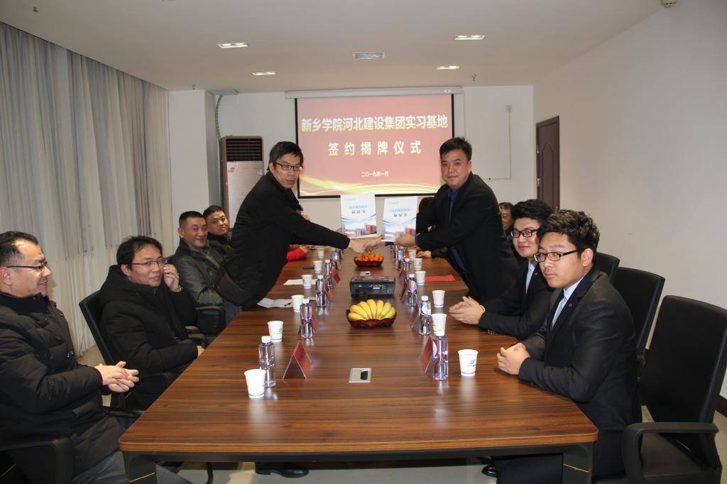 2019年1月14日下午,我院与河北建设集团实习基地签约揭牌仪式在河北建设集团新乡区公司隆重举行。我院党总支书记黄家骏、院长赵磊、副院长潘林,河北建设集团河南区域总经理孟立新、书记左海峰、新乡区公司总经理白来福等公司领导共同出席了本次实习基地签约揭牌仪式。