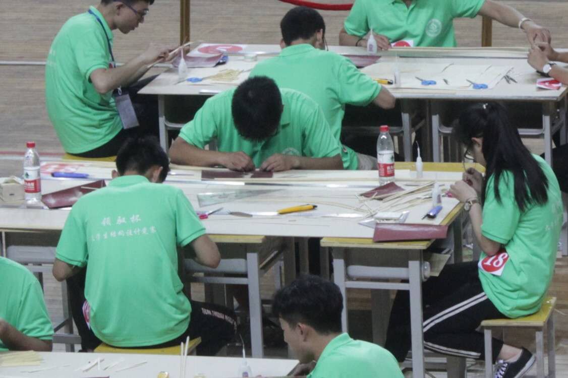 5月17日下午,比赛正式开始。模型制作期间,同学们争分夺秒,拿出自己最好的水平,小组成员之间配合默契,整个制作现场充满了浓厚的学术氛围。比赛的过程是热闹非凡,随着时间的不断减少,参赛队员们的心情也之紧绷,甚至流出了汗水。回想赛前,我院参赛队伍精心准备,多次进行试验,在一次次的成功与失败中摸索改进,所谓“苦心人,天不负”,最终模型承受住了考验,两组参赛队员均荣获二等奖。