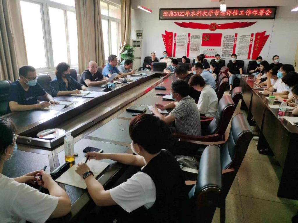 6月12日下午,我院在会议室召开迎接本科教学审核预评估工作部署会议,传达学校审核预评估迎检通知,强化思想认识与纪律要求,细化落实各项材料准备任务。学院党委书记李永刚、院长赵磊、副院长马芸、潘林、党委副书记袁大伟及全体教职工参加会议,会议由学院院长赵磊教授主持。