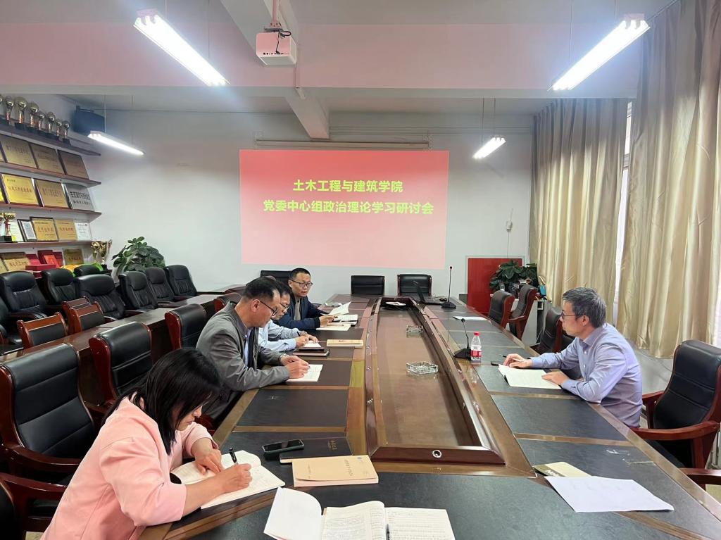 为深入落实《中共中央关于在全党深入开展学习贯彻习近平新时代中国特色社会主义思想主题教育的意见》《中共河南省委关于在全省党员中深入开展学习贯彻习近平新时代中国特色社会主义思想主题教育的实施意见》的要求,持续强化理论武装、坚定理想信念,5月30日下午,土建学院党委中心组在A09三楼会议室召开政治理论学习研讨会会。党委中心组全体成员参加会议,会议由院长赵磊主持。