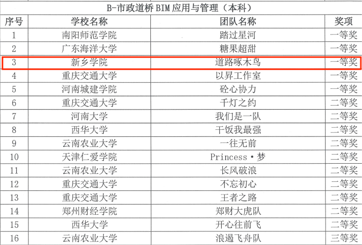 2023“鲁班杯”全国高校BIM毕业设计作品大赛成绩公布,由betway西汉姆联官网史纪村、陈凡老师指导,学生张珍珍、孔昱雯、赵艳北、唐文强、马璐彦组成的道路啄木鸟队首次在B-市政道桥BIM应用与管理(本科)模块荣获一等奖。