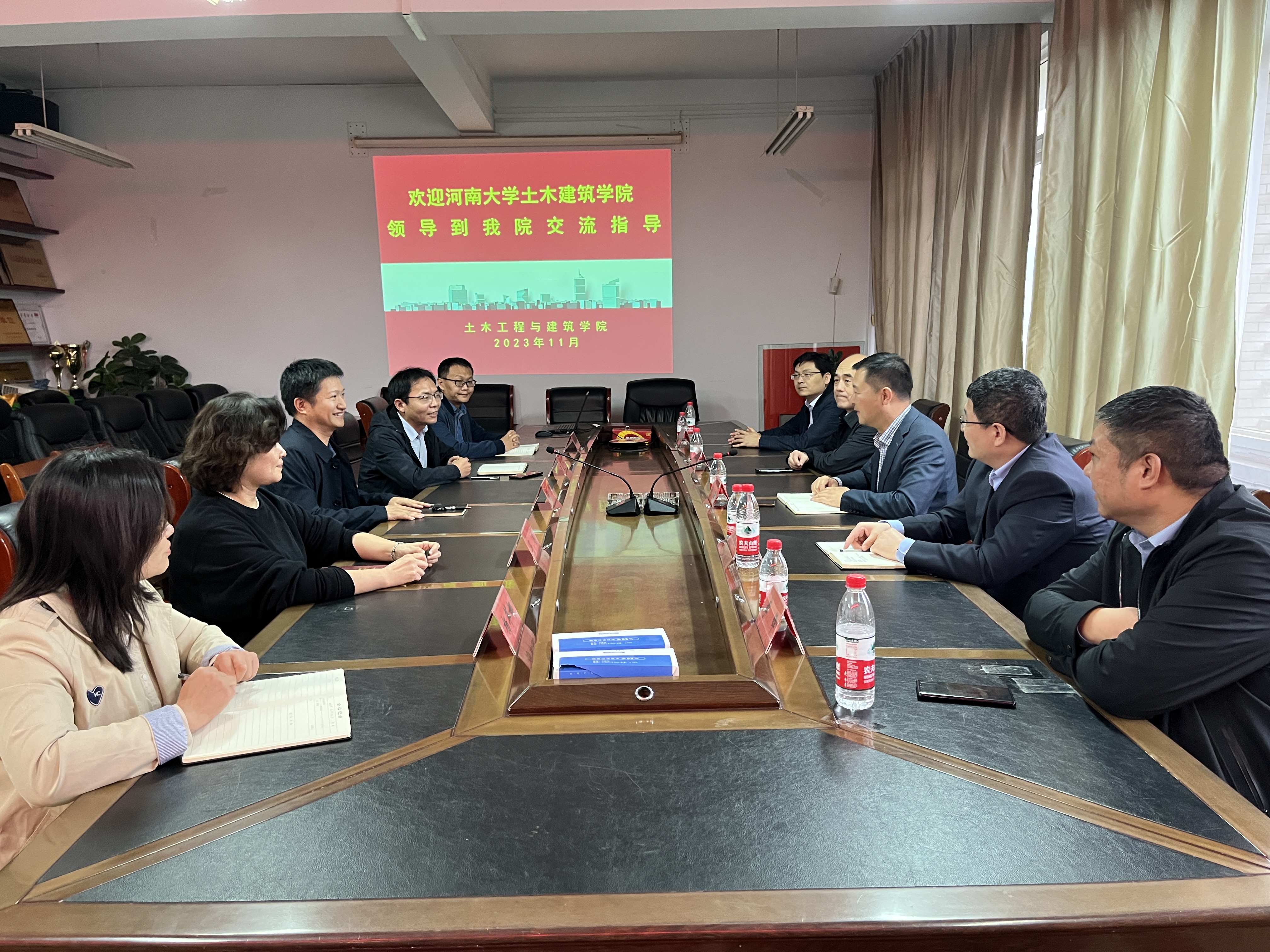 汤沛首先对河南大学土木建筑学院领导班子一行表示热烈欢迎,并介绍了我校土建betway西汉姆联官网及班子成员。潘林详细介绍了土建学院在学科建设、人才培养、科学研究、课程思政、师资建设等方面的主要做法和取得的成绩。