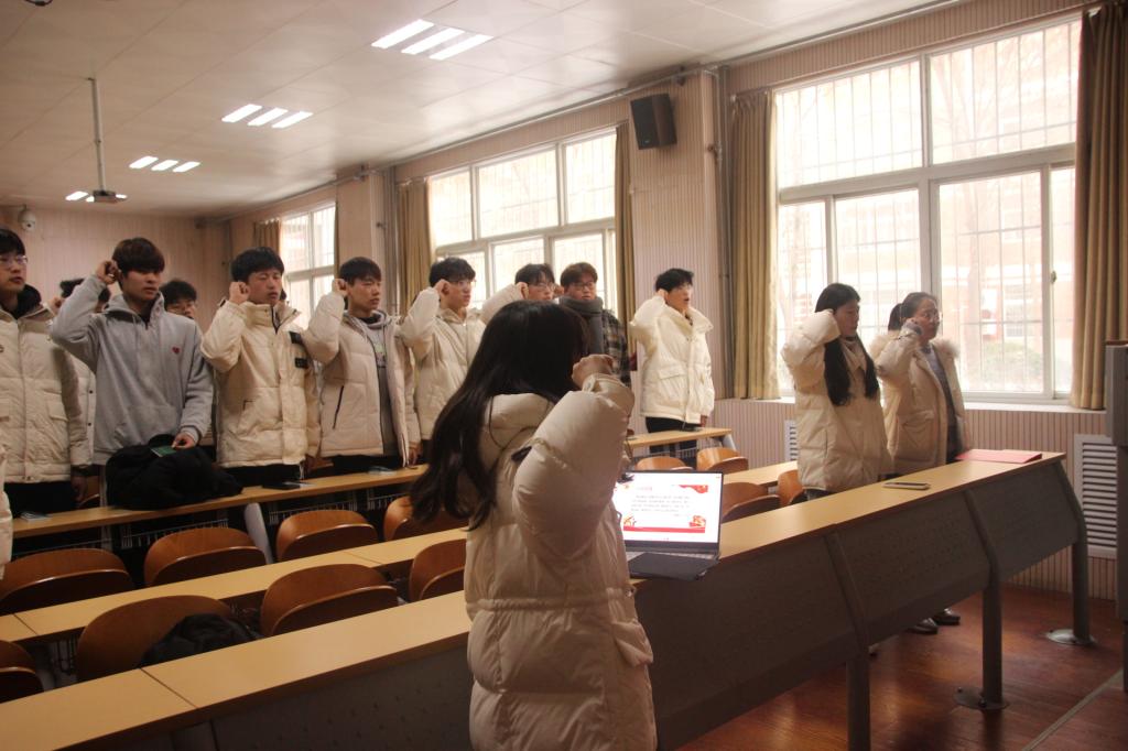 为了强化大学生团员们的爱国爱党意识,增强使命感,12月19日,betway西汉姆联官网在A05-106成功举行了新发展团员入团仪式,参加此次仪式的有团委书记许玲玲老师,团委学生兼职副书记高雪珂、李萌,青马班全体成员以及新发展团员,活动由杨浩同学主持。