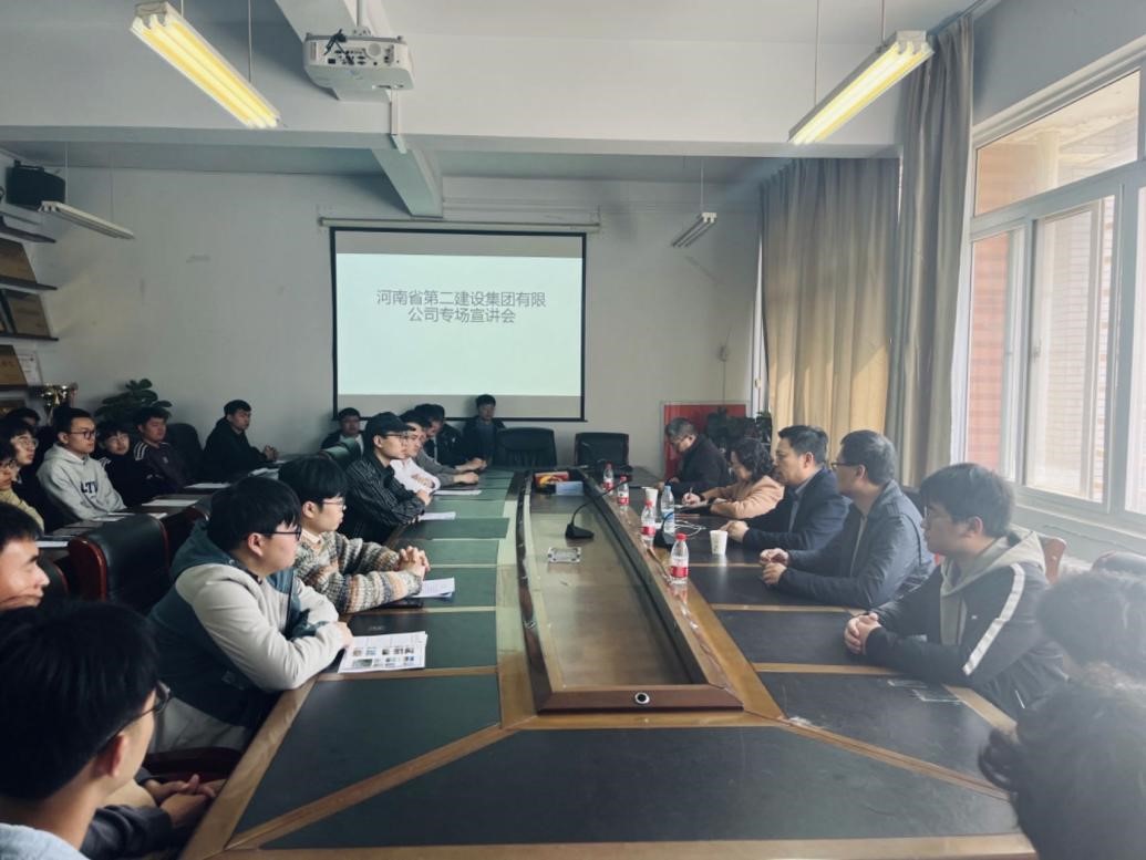为进一步推进2024届毕业生就业工作,更好的拓宽学生就业渠道并提供多样化的职业发展机会,我院于3月21日邀请河南省第二建设集团举行招聘宣讲会。河南省第二建设集团有限公司人力资源部部长夏卫新、河南二建集团钢结构有限公司办公室主任张新霞、betway西汉姆联官网副书记袁大伟、土木工程教研室教师张永才以及betway西汉姆联官网60余名应届毕业生参加了宣讲会,会议由袁大伟主持。