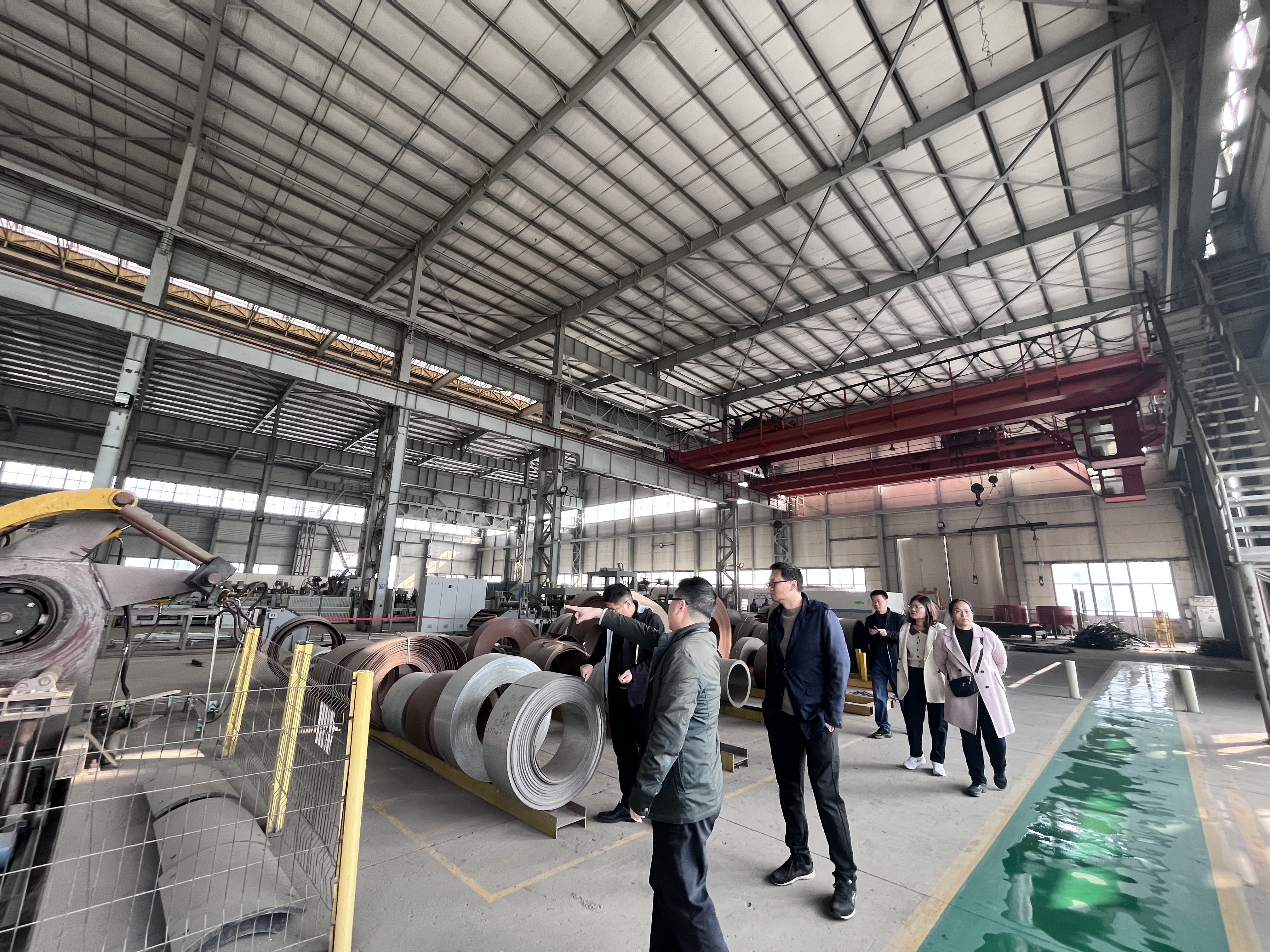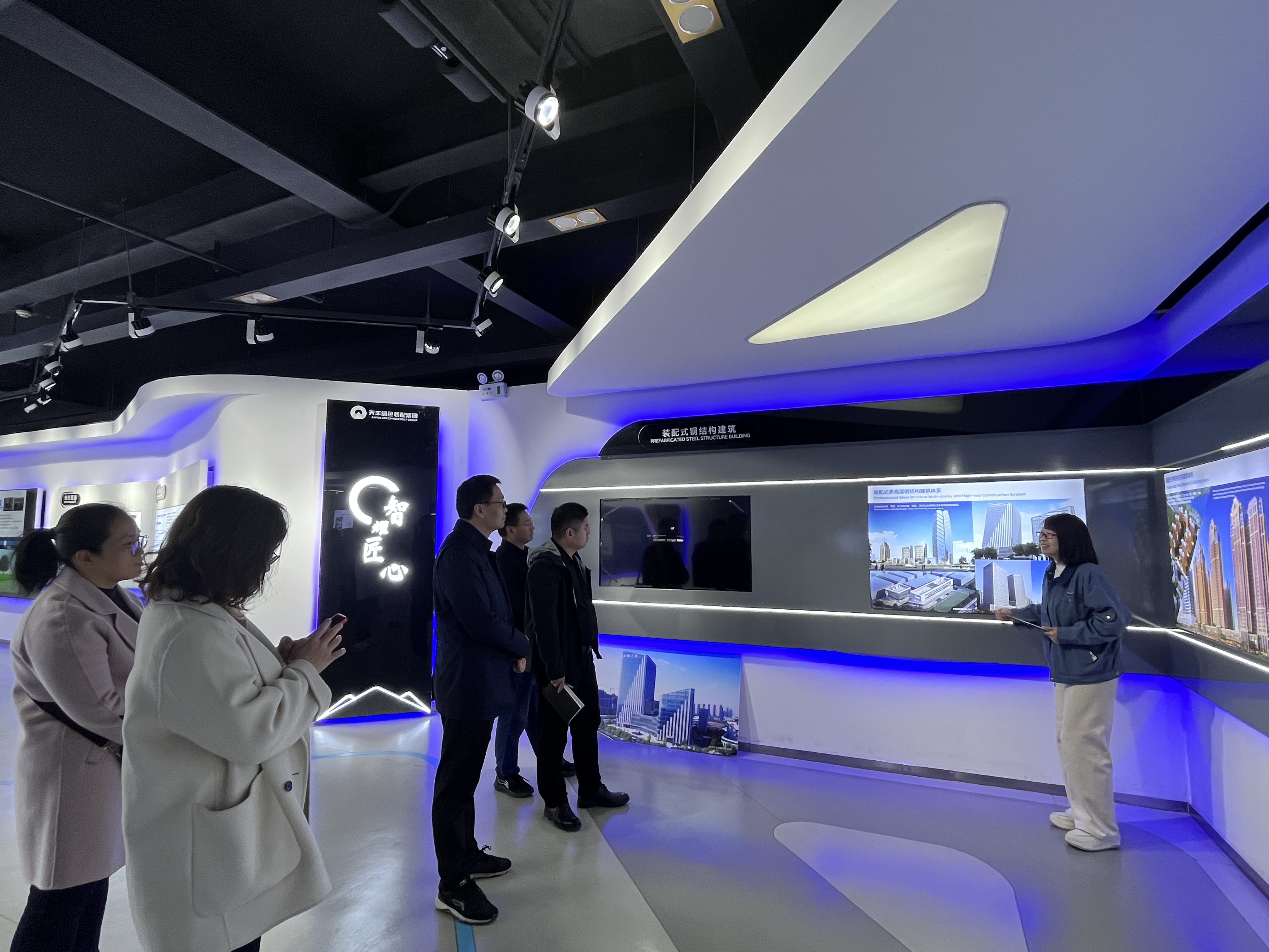 袁大伟一行首先来到天丰绿色装配展厅,参观了天丰绿色装配集团发展历程、党建引领、集成创新、智能装备等方面情况。接着调研组进入公司的业务线、生产线以及装配车间,观摩学习了装配式绿色建筑的生产工艺、智能制造等生产环节。