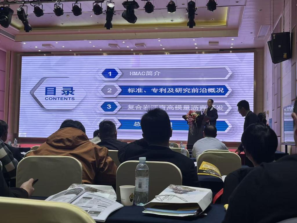 报告会上史纪村教授介绍了高模量沥青混凝土的研发背景、国内外标准、专利与研究前沿动态,复合岩沥青高模量沥青研发情况。通过岩沥青的复合改性,实现了:显著提高沥青混合料模量,有效抵抗重载车辙;增强抗疲劳性能,延长路面使用寿命;改善温度敏感性,提升高低温性能稳定性;环保与经济性兼顾,部分替代传统聚合物改性剂。