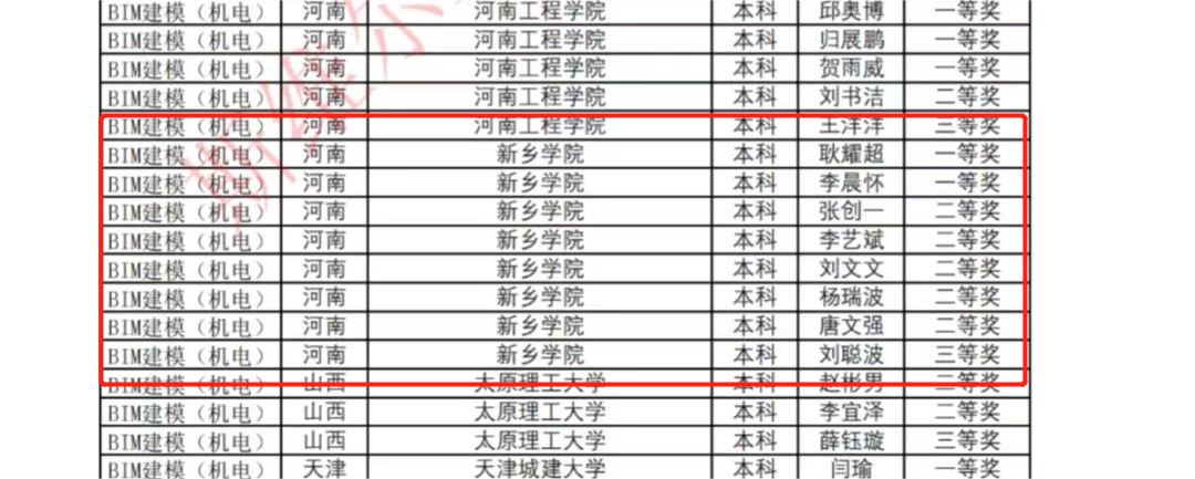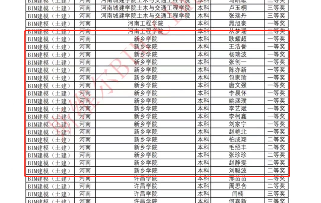 我院在2022年10月结束的第十四届“斯维尔杯”全国高校BIM-CIM创新大赛个人赛中获得一等奖15项、二等奖10项、三等奖4项。第十四届“斯维尔杯”全国高校BIM-CIM创新大赛个人赛共吸引了来自全国320多所院校的8200多名学生参加,通过本次比赛,加深了广大学子对建筑信息模型(BIM)技术的了解,推进了BIM技术教学和应用,为高校BIM应用型人才培养搭建了良好平台。激发了建筑学子对专业知识学习兴趣,培养了专业爱好。通过“以赛促练、以赛促建、以赛促学、以赛促改”的教改形式,将职业技能大赛与专业培养目标、就业岗位需求以及国家职业标准要求相结合,进一步提升人才培养质量。在此次比赛中,河南地区除了新乡学院以外,还有郑州大学、河南理工大学、河南财经政法大学、河南城建学院、河南工程学院、许昌学院6所兄弟院校获得非常好的成绩,祝贺大家!