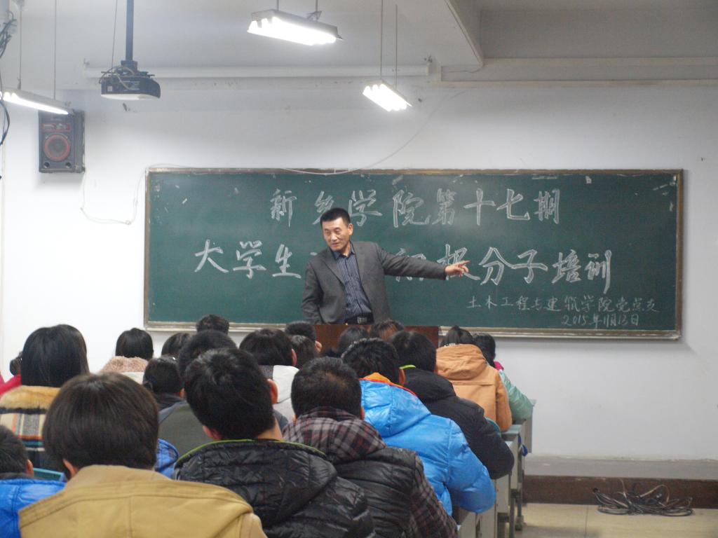 11月13日晚7时,我院于A09-311教室举行了新乡学院第十七期入党积极分子培训暨开课仪式。此讲由我院党总支黄家骏书记主讲,我院共有82名入党积极分子参与培训。