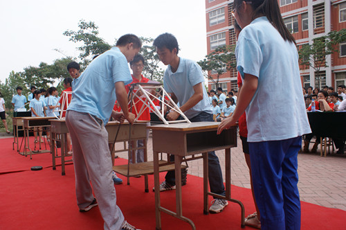 副院长刘翔教授作赛后总结讲话,他表示,结构模型设计大赛这种活动方式非常新颖,同学们在比赛过程中所表现出来的专业素质和设计能力也给我们留下了深刻印象,通过一件件模型的加载实验,把结构受力直至破坏的全过程真实地体现出来,切实做到了理论和实践的有机结合。他还指出,实践和创新能力是社会对人才需求的一个重要标准。土木工程与建筑系的师生们把专业思想越来越多地贯穿于各项实践活动中,在实践中培养动手和创新能力,提高学生的综合素质,将教与学有机结合,推动了良好的系分、学风的形成。最后,刘副院长对本次大赛取得圆满成功表示深深的祝贺,并祝愿土木工程与建筑系越办越好!