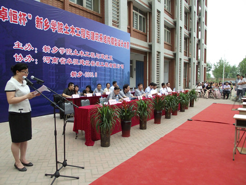 6月20日下午,由我系主办的“卓恒杯”新乡学院土木工程与建筑系结构模型设计大赛在9号楼前厅举行。新乡学院副院长韩先喜、吴中、阎宏斌、郭爱先、刘翔、王选年、纪检委书记张少华和相关部门领导莅临比赛现场观摩指导,河南卓恒建筑安装工程有限公司董事长张子贵先生和总经理陈双虎先生作为来宾到场观看指导比赛。我系全体教师和同学们现场观看了比赛,大赛由我系党总支书记黄家骏主持。