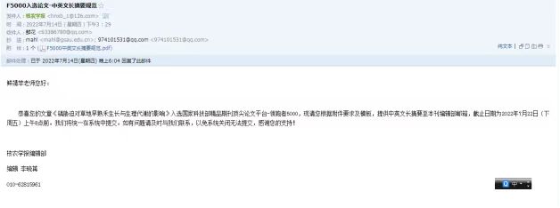 日前,由科技部中国科学技术信息研究所主办的2021年度“领跑者5000-中国精品科技期刊顶尖学术论文(简称F5000)”评选结果揭晓,我院风景园林教研室主任鲜靖苹老师发表在《核农学报》2019年第1期的论文—《镉胁迫对草地早熟禾生长与生理代谢的影响》入选。