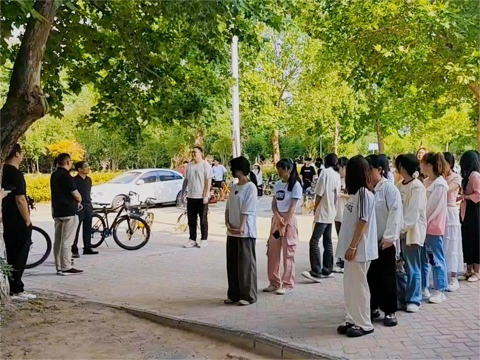 演练开始之前,黄永毅向参加演练的学生介绍了疏散路线和逃生注意事项,强调要做到听从指挥,有序疏散,确保安全。火灾警报响起后,学生们沉着冷静,捂住口鼻、低头弯腰,在辅导员的组织下有序地进行紧急疏散,迅速撤离。实验室管理员立即切断电源,模拟火灾初期的灭火工作,防止火势扩大蔓延。学生们撤离到安全地点后,张勋程老师清点了人员数量和伤情,并向总指挥汤沛汇报疏散情况。随后,保卫处人员向学生讲解了灭火器的灭火原理、使用方法及注意事项,并指导学生现场灭火。