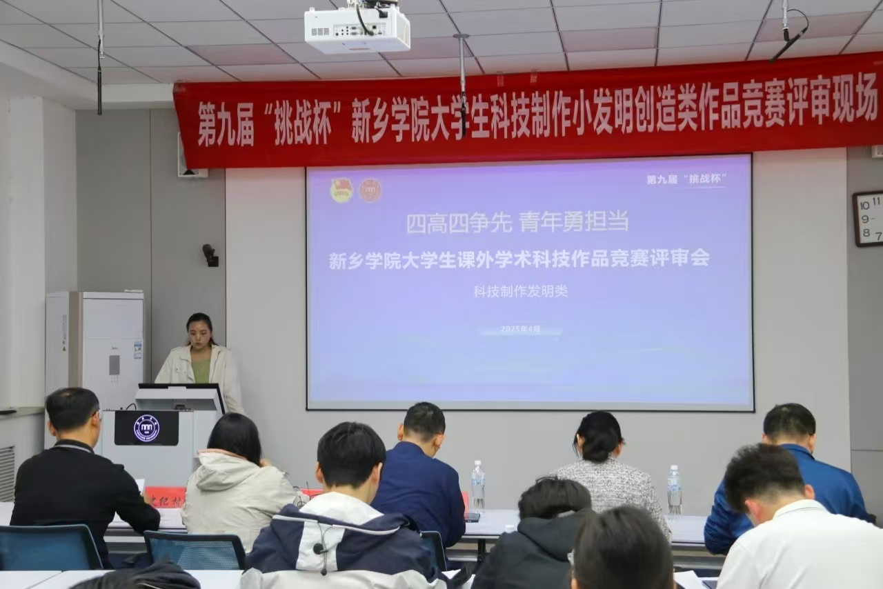2025年4月8日,第九届“挑战杯”新乡学院大学生课外学术科技作品竞赛(科技发明制作类)在A05-206隆重开幕。本类别竞赛由共青团新乡学院委员会主办,betway西汉姆联官网承办,以“崇尚科学、追求真知、勤奋学习、锐意创新、迎接挑战”为主题,为青年学子搭建了展现创新精神与科研能力的广阔舞台。本次大赛由betway西汉姆联官网主办,会议由团委书记宋紫阁主持,特别邀请到校内外多位专家担任评委,包括河南师范大学教务处副处长姜玉钦教授、新乡职业技术学院尹静文教授,以及新乡学院徐彦教授、邝涛教授和史纪村教授。