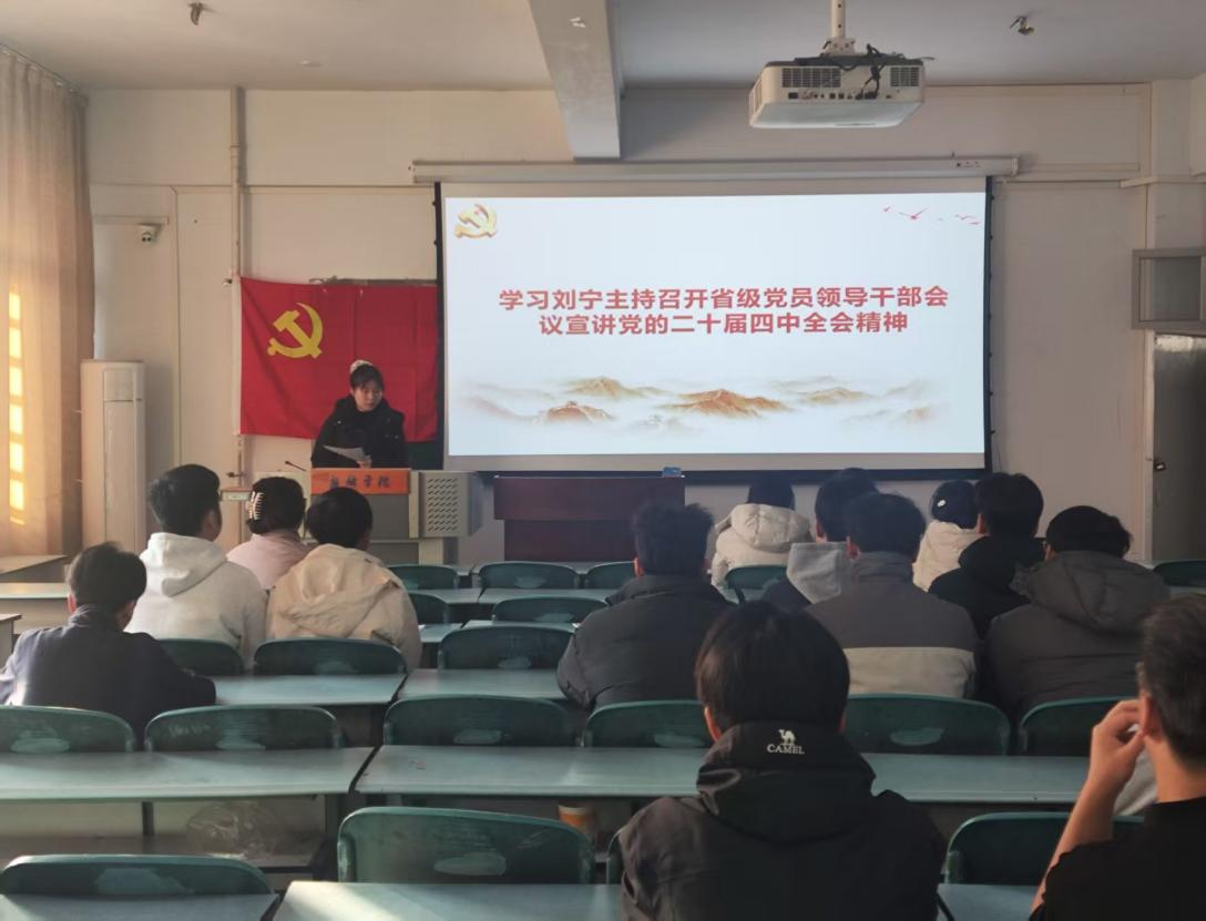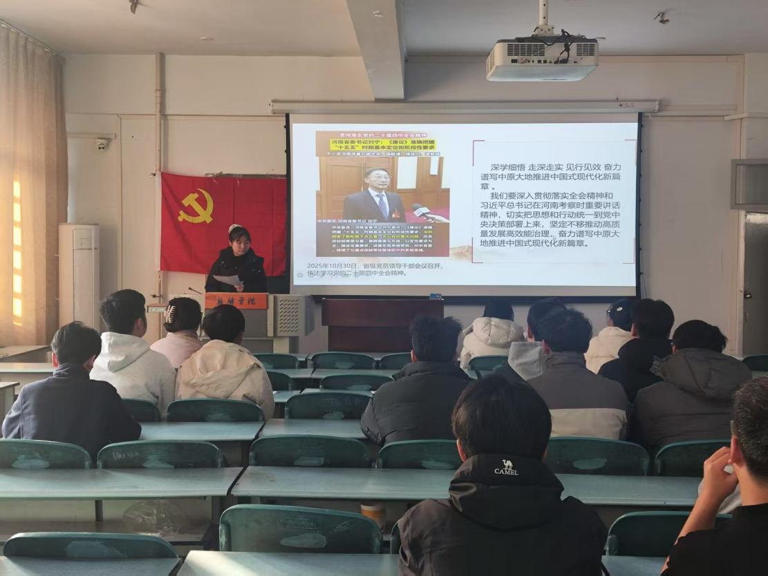 为深入学习宣传贯彻党的二十届四中全会精神,把青年党员的思想和行动统一到全会决策部署上来,2025年12月16日,betway西汉姆联官网学生第四党支部全体党员、入党积极分子开展专题党课学习。本次党课聚焦刘宁主持召开的省级党员领导干部会议宣讲党的二十届四中全会精神核心内容,结合中原大地推进中国式现代化的实践要求,为支部成员筑牢思想根基、明晰行动方向。
