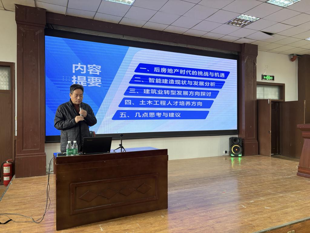 2025年12月18日下午,我院于A01报告厅举办专题学术讲座,周同和与郭院成教授分别围绕“智能建造与建筑业转型发展”和“城市更新与地下空间开发利用”作主题报告,深入探讨后房地产时代建筑业的挑战、机遇与转型路径。