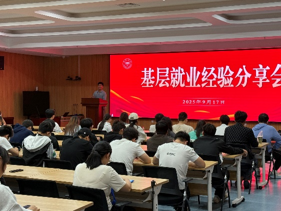 朱向辉还参加了就业中心举办的基层就业经验分享会,结合自身经历解答学弟学妹关于就业政策、岗位适应的疑问。他鼓励大家胸怀天下,勇于打破就业地域局限,将个人理想融入国家发展,扎根祖国最需要的地方埋头苦干,实现新时代新青年的人生价值,引发在场学生强烈共鸣。