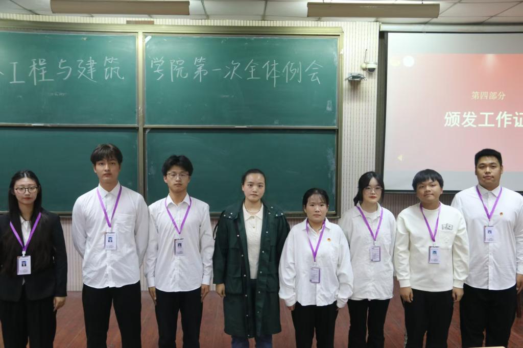 会议伊始,全体人员肃然起立,齐声奏唱团歌。然后团委学生兼职副书记张鑫鑫致开幕词,张鑫鑫表示学生会成员要团结一致、大胆创新,秉承着一颗无私奉献的心,为土建大家庭落实一系列切实有效的实际行动。随后,第十八届主席团代表李奥飞上台发言,李奥飞首先对学生会的工作情况进行了总结,并鼓励各成员发挥自己的才干,尽心尽责地完成学生会分配的每一项任务。紧接着宋紫阁老师为全体主席团成员发放了工作证,各部门也相继分发工作证,并进行合影留念。会议最后由宋紫阁老师致闭幕词,宋紫阁老师对同学们提出三点要求:一是要以学习为重,合理规划时间,拓展学习通道;二是要廉洁自律,树立正确的价值观,遵守规章制度;三是提升自我能力,设立明确目标,建立良好人际关系。团委学生会成员聚精会神地聆听老师的致辞,伴随着热烈且饱含激情的掌声,此次会议圆满落下帷幕。